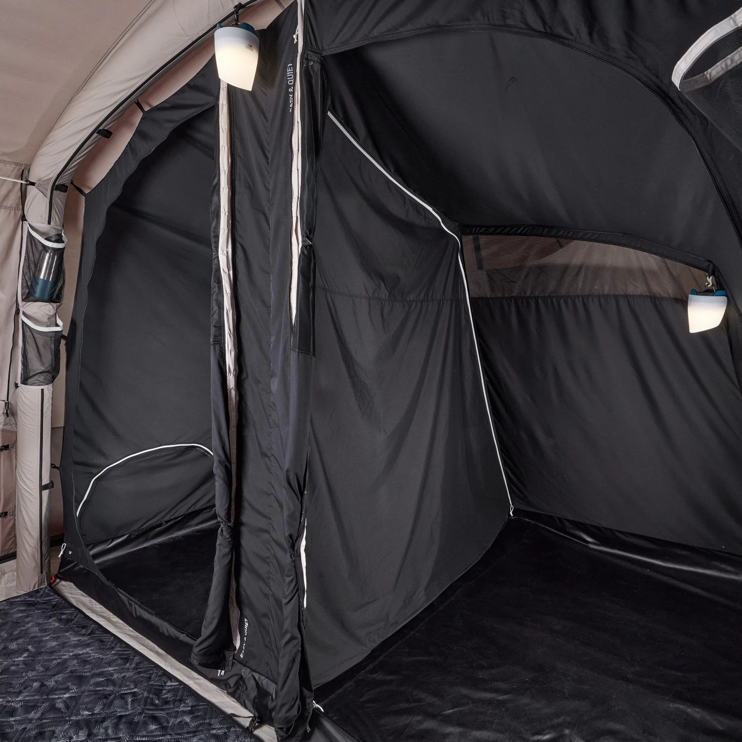 The bedrooms in this tent are intended to accommodate a maximum of 2 x 70 cm wide mattresses.