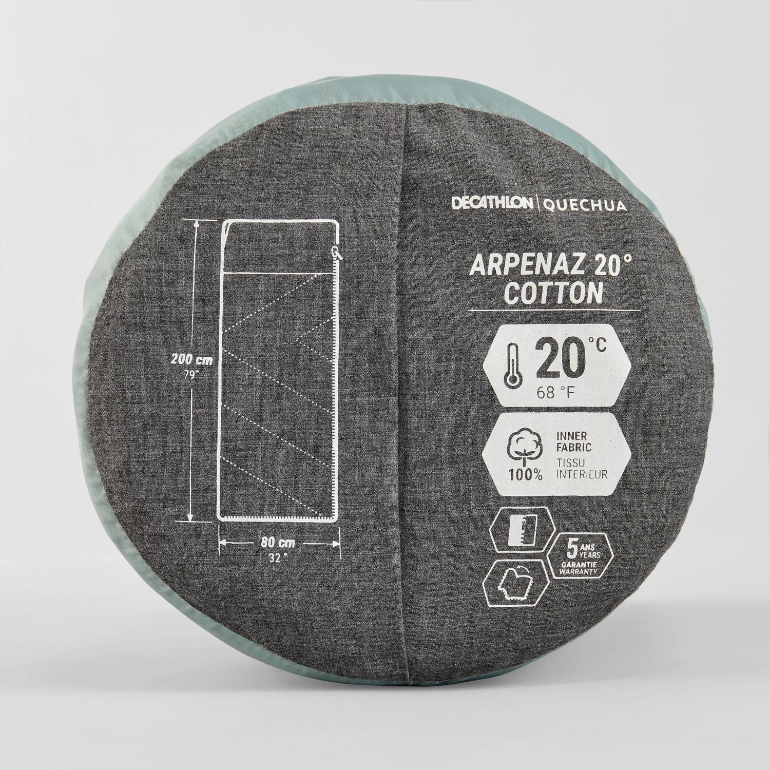 Our camping designers have developed this Arpenaz 20° cotton sleeping bag for comfortable sleep when camping in temperatures close to 20°C.A comfortable sleeping bag with an extremely pleasant cotton feel. It is two metres long and can be converted into a duvet. It comes with a five-year warranty.