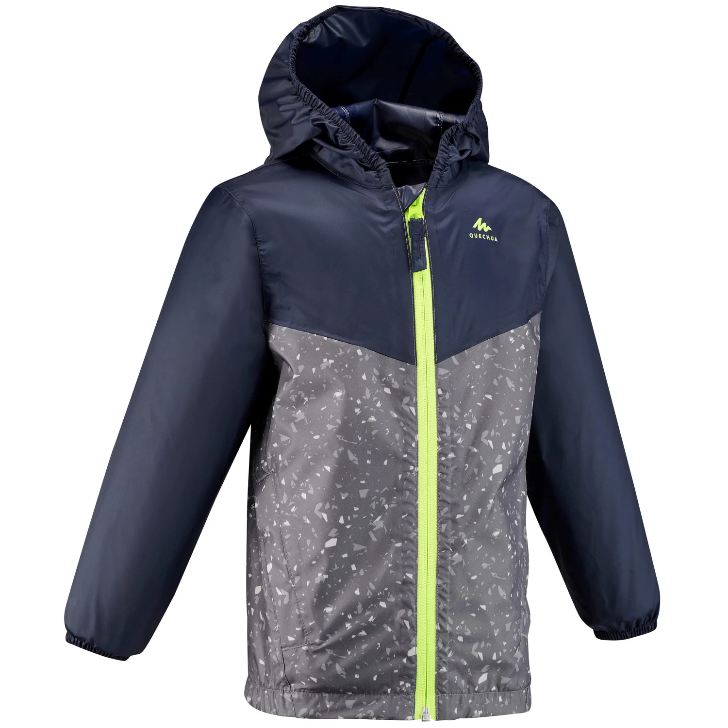 Can be stored in his pocket. Central zip opening, elasticated hood, wrists and waistband