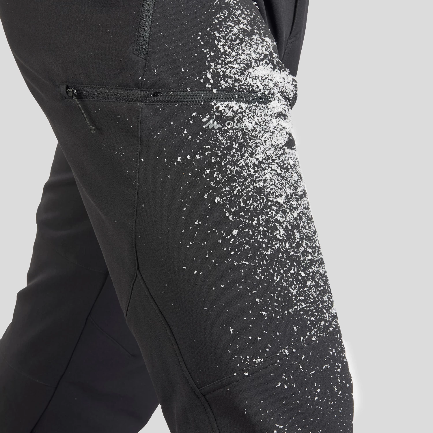 Our designers developed these softshell trousers for regular hikes in cold and snowy conditions. Designed in stretchy, warm, and water-repellent material.These warm, water-repellent, and stretch trousers are perfect for snow hiking. Comfortable, with a lace-up fastening hook at the ankle, they are suitable for all routes and trails.