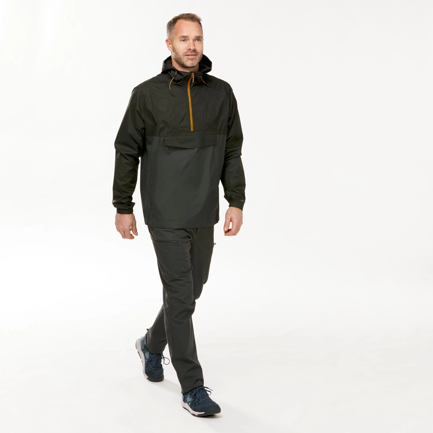 Our hiking designers have designed this waterproof jacket for occasional hikes in wet weather. Ideal for use in woody areas or on the coast.The jacket doubles up as a practical shoulder bag, allowing you to hike without bringing a backpack.