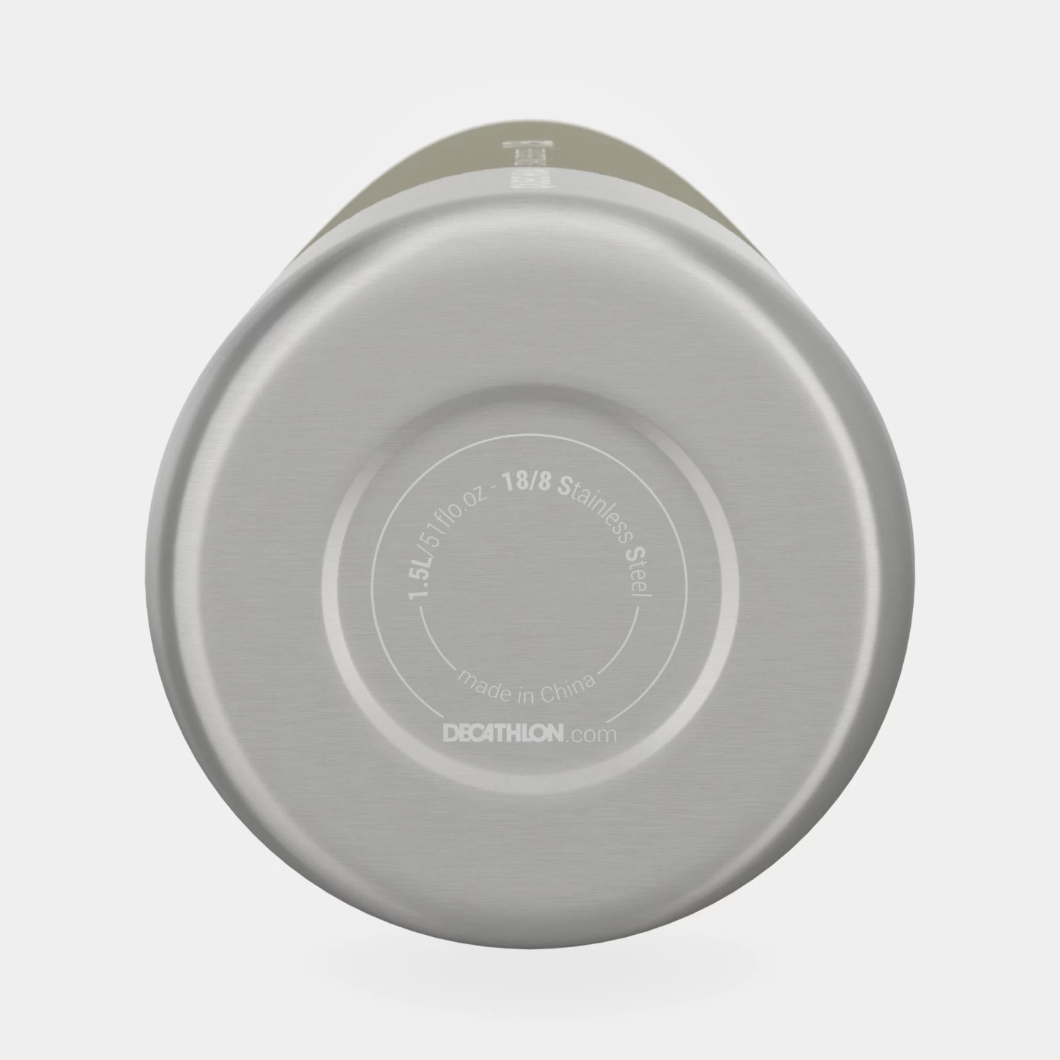 Quechua Stainless Steel Hiking Flask With Screw Cap MH100 1.5 L Khaki